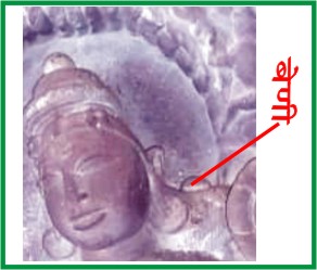 कुण्डल- कुण्डल परिकर के स्त्री और पुरुष दोनों पात्रों को धारण किये हुए दर्शाया गया है। ज्यादातर पात्र आभरण रहित कानों वाले नहीं दर्शाये गये हैं।