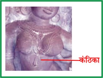 कंठिका- कण्ठिका प्राय: स्त्रीपात्रों को धारण किये हुए प्रदर्शित की जाती है। हार या एकलडिक़ा में कंठी लगी होने से कण्ठिका बन जाती है। अंबिका या पाश्र्व की माता को यह धारण करायी गई है।