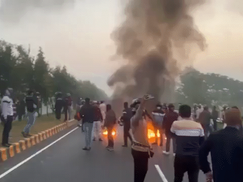 फैसले से एक दिन पहले ही बांग्लादेश के कई हिस्सों में उग्र प्रदर्शन शुरू हो गए। प्रदर्शनकारियों ने कारों में आग लगाई, जगह-जगह कॉकटेल बम फोड़े और हाईवे पर पत्थर फेंककर रास्ते बंद कर दिए। हालात बिगड़ते देख सरकार ने पुलिस के साथ सेना और बॉर्डर गार्ड बांग्लादेश (बीजीबी) को तैनात किया है। बीजीबी कई हाईवे खाली करा रही है ताकि आवागमन फिर शुरू हो सके।