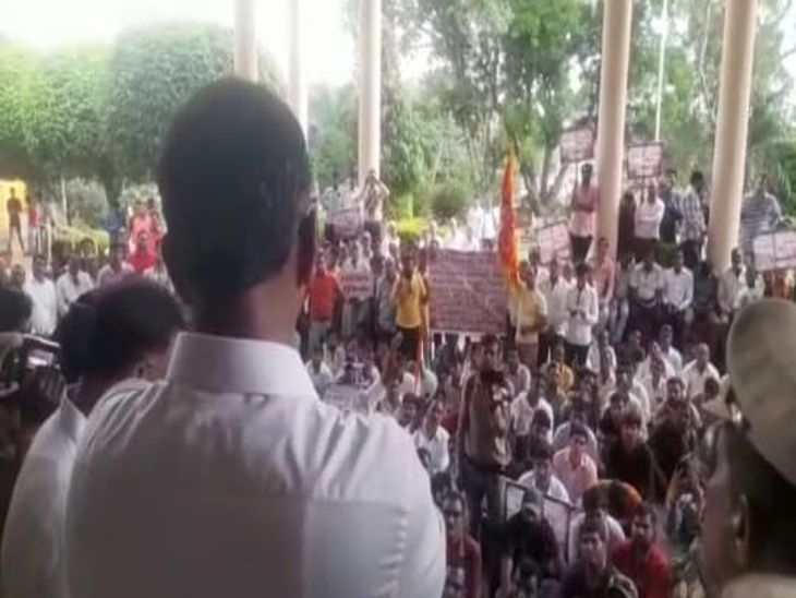 इंदौर-पीथमपुर के बीच बन रहे इकोनॉमिक कॉरिडोर के लिए जमीन अधिग्रहण के मामले ने मंगलवार को को तूल पकड़ लिया। इस क्षेत्र के 16 गांवों से जुड़े किसान कलेक्ट्रेट के सामने एकत्रित हुए और इसका जमकर विरोध किया। किसानों ने प्रशासन और सरकार के खिलाफ नारेबाजी की और कहा कि हम ऐसी मनमानी नहीं चलने देंगे। प्रदर्शन करीब दो घंटे तक चला। इस दौरान किसानों ने अधिकारियों को सद्बुद्धि देने के लिए भजन भी गाए।