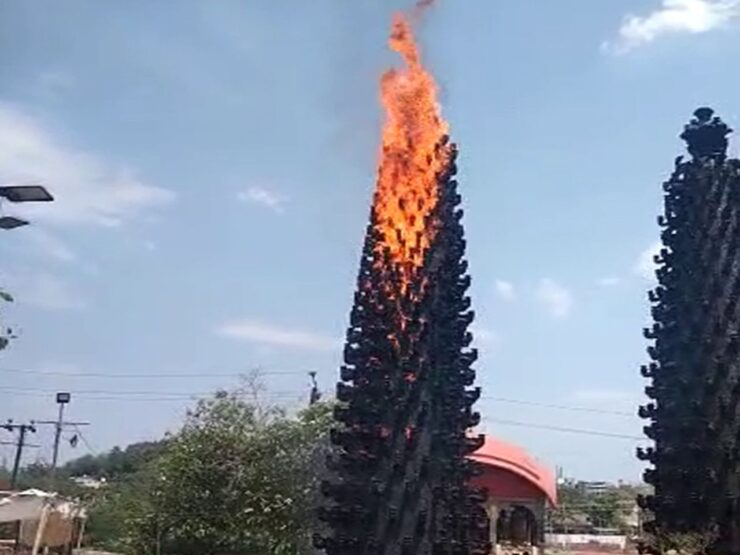 मंदिर के पंडित राजेश गोस्वामी ने बताया कि दोपहर 1 बजे साउथ से आई कुछ महिला श्रद्धालुओं ने 108 दीप प्रज्ज्वलित कर दीप स्तंभ के पास रख दिए। इन्हीं दीपक की वजह से दो दीप स्तंभ में से एक ने आग पकड़ ली। देखते ही देखते आग बढ़ती गई। 51 फीट ऊंचे दीप स्तंभ के निचले हिस्से की आग तो मंदिर कर्मचारियों ने बुझा दी, लेकिन ऊपर के हिस्से में लगी आग पर काबू नहीं पा सके थे।
