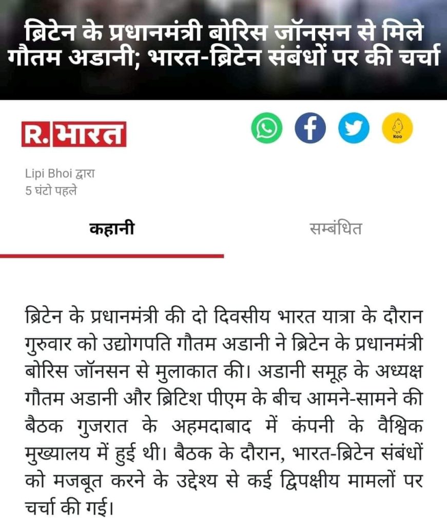 छोड़ो अब आईटी सेल,सहित भक्तो फेसबुक शोशल मीडिया पर पर यह कुतर्क लिखना शुरू कर दो की ब्रिटेन के प्रधानमंत्री को अपना एक सेठ ही सम्भाल ले रहा है 56इंची की तो बात ही छोड़ दीजिए