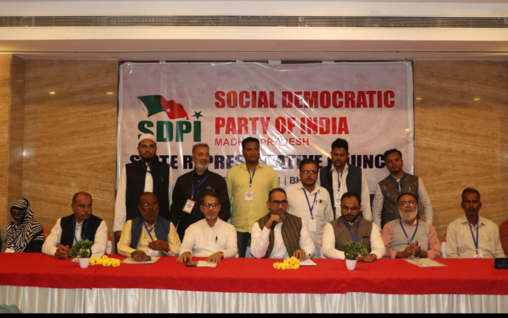 सोशल डेमोक्रेटिक पार्टी आफ इंडिया, मध्यप्रदेश की प्रदेश कार्यकारिणी का गठन किया गया। राज्य प्रतिनिधि परिषद का आयोजन या। पार्टी के राष्ट्रीय महासचिव इलियास मोहम्मद थुम्बे और मोहम्मद शफी साहब प्रदेश कार्यकारिणी के गठन में विषेश अतिथि के रूप में उपस्थित थे। जहां उनके निर्देशन में प्रदेश कार्यकारिणी के गठन की प्रक्रिया को पूरा किया गया और प्रदेश के नये पदाधिकारियों को चुना गया।