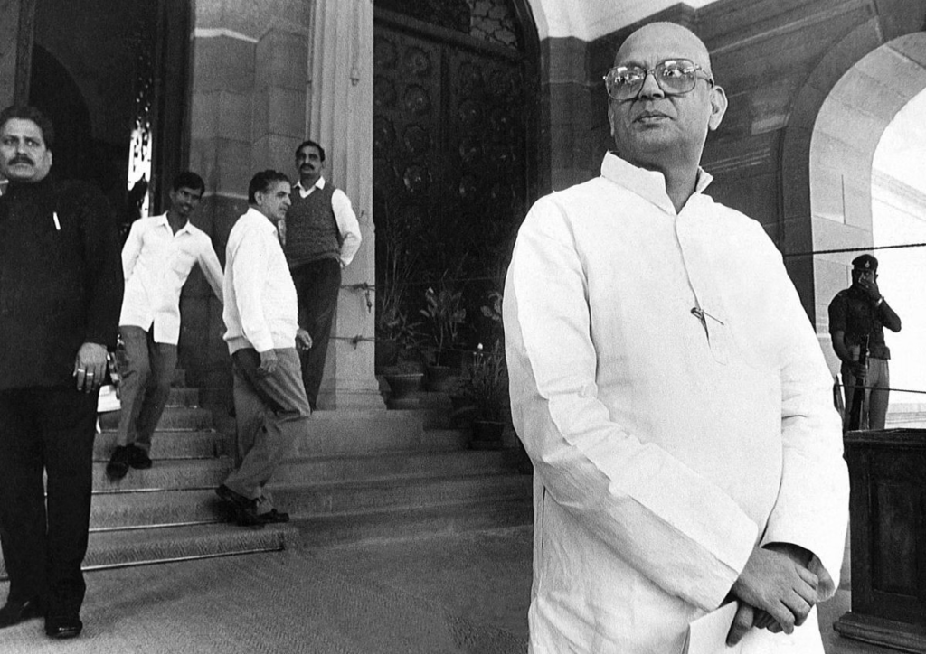 संसद के बाहर खड़े वीपी सिंह | फोटो: प्रवीण जैन