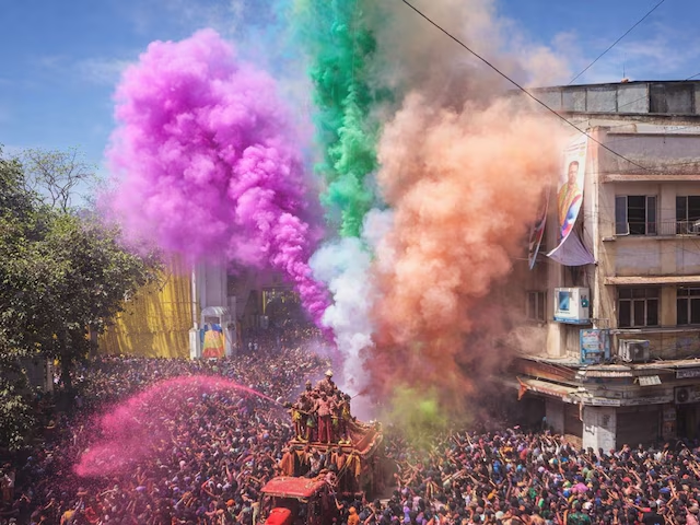 रंगों की बौछार के बीच निकली इंदौर की गेर, सख्त सुरक्षा के बीच नेताओं से दूरी