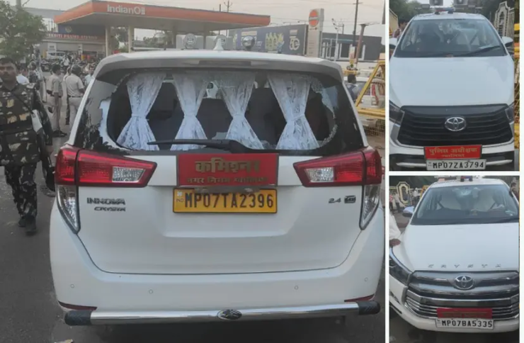कमिश्नर और अफसरों की गाड़ियों में की तोड़फोड़