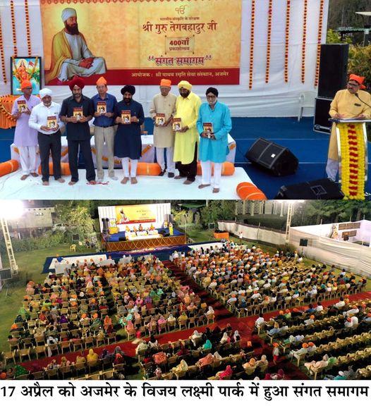 राष्ट्रीय स्वयंसेवक संघ और श्री माधव स्मृति सेवा संस्थान की ओर से 17 अप्रैल को अजमेर के विजयलक्ष्मी पार्क में गुरु तेग बहादुर जी के 400 वें प्रकाशोत्सव पर आयोजित संगत समागम में अजमेर रेंज आईजी रुपिंदर सिंह ने लोगों को महत्वपूर्ण जानकारी दी। सिंह ने कहा कि मुगल काल में हो रहे धर्मांतरण का गुरु तेग बहादुर ने विरोध किया। वे नहीं चाहते थे कि हिन्दू समुदाय के लोग अपना धर्म परिवर्तन करें। जिस तरह से गुरु तेग बहादुर ने अपने जीवन काल में धर्मांतरण का विरोध किया उसे देखते हुए कहा जा सकता है कि उन्होंने मुगल काल में ही भारत के स्वतंत्रता आंदोलन की शुरुआत कर दी थी। उनका पूरा जीवन एक तपस्वी योद्धा के तौर पर रहा। हमें उनके जीवन से प्रेरणा लेनी चाहिए। उन्होंने अपने विचारों को आम लोगों तक पहुंचाने के लिए लगातार भ्रमण किया। उन्होंने किसी दूसरे के लिए मर मिटने की सिख दी। उनकी वाणी से हमें हमेशा प्रेरणा मिलती है। मजबूर की हमेशा रक्षा करनी चाहिए। अहंकार का त्याग कर संगत अच्छे लोगों की होनी चाहिए। एक अहंकार विचार हमें विनाश की ओर ले जाता है। आईजी रुपिंदर सिंह ने कहा कि कोरोना काल में संघ प्रेरित संस्थाओं तथा सिक्ख समाज के द्वारा जो सेवा कार्य किया गया उसकी सर्वत्र प्रशंसा हुई है। उन्होंने अपनी मातृ भाषा सीखने पर भी जोर दिया। आईजी सिंह द्वारा प्रस्तुत किए गए विचारों का संगत समागम में सभी प्रशंसा की। इस समारोह में राजस्थान अल्पसंख्यक आयोग के पूर्व अध्यक्ष जसबीर सिंह ने कहा कि गुरु तेग बहादुर अपने जीवन काल में कट्टरपंथ के सामने मानवता की प्रखर आवाज बन कर उभरे। उन्होंने औरंगजेब के बर्बर अत्याचार से हिन्दू समाज की रक्षा की। भारतीय संस्कृति की रक्षार्थ अपना बलिदान देकर उन्होंने सत्य के पथ पर चलने की प्रेरणा दी। उन्होंने कहा कि इस्लाम, ईसाई, फारसी और यहूदी सभी बाहरी धर्म है, जबकि जैन, सिक्ख, हिन्दू और बौद्ध धर्म हमारे ही देश में उत्पन्न हुए हैं। उन्होंने कहा कि मुगल शासन में महिलाओं और कन्याओं पर बहुत अत्याचार हुए, इसकी वजह से ही देश में सती प्रथा, बाल विवाह, घुघट प्रथा जैसी कुरीतियों ने जन्म लिया। गुरु तेग बहादुर जी ने देश भर में घूम कर अपने प्रवचनों के माध्यम से हालातों को सुधारने के प्रयास किए। उन्होंने छोटी छोटी जातियों को एकजुट करने का भी काम किया। राष्ट्रीय स्वयंसेवक संघ और श्री माधव स्मृति सेवा संस्थान के द्वारा संगत समागम किए जाने पर जसबीर सिंह ने आयोजकों को बधाई दी। संगत समागम में भाई जसविंदर सिंह हजूरी रागी ने भजनों की प्रस्तुति देकर सबका मन मोह लिया। समारोह में सुप्रसिद्ध कवि बक्शीश सिंह द्वारा लिखित पुस्तक हिन्द का सागर का विमोचन भी किया गया। समारोह में संघ की क्षेत्रीय कार्यकार