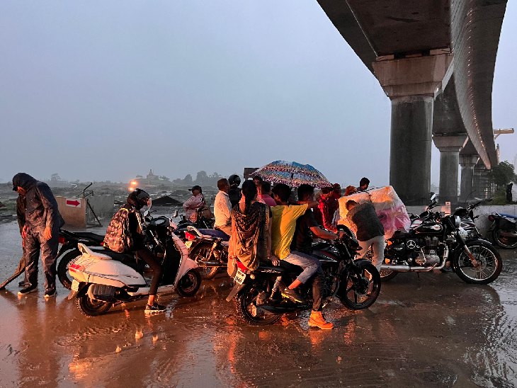 बारिश से बचने के लिए लोग प्रस्तावित मेट्रो लाइन के नीचे जगह ढूंढते रहे