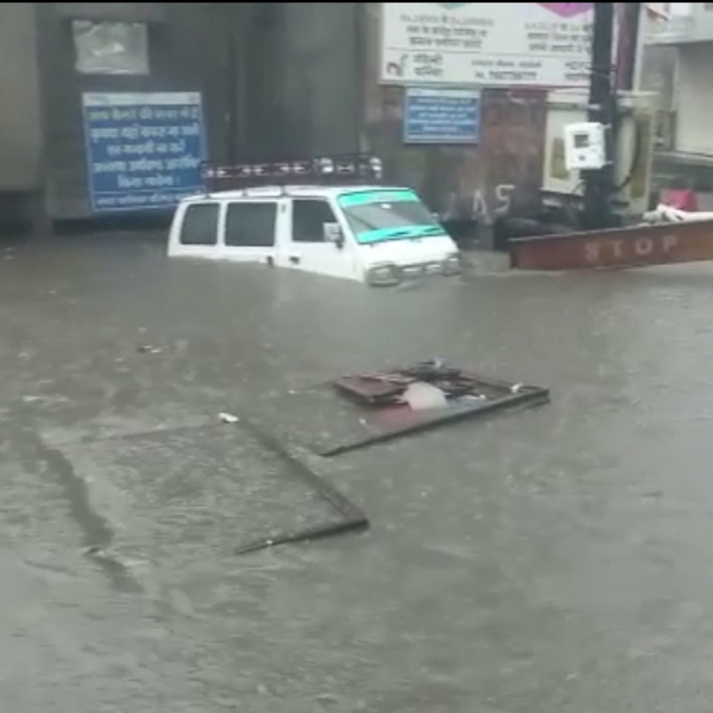 इंदौर में तेज बारिश से सड़कों पर जलभराव की स्थिति बन गई।