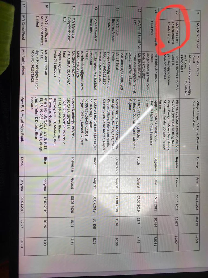 इसके साथ ही उनकी कंपनी प्राइड ईस्ट एंटरटेनमेंट प्राइवेट लिमिटेड ने केंद्र के खाद्य प्रसंस्करण मंत्रालय में एक निवेदन कर 25 करोड़ 87 लाख की अपनी योजना को सबमिट कर सब्सिडी के लिए आवेदन किया। उक्त मंत्रालय द्वारा कंपनी को 10 करोड़ रुपये की सब्सिडी प्रदान की गई है। जबकि प्राइड ईस्ट एंटरटेनमेंट प्राइवेट लिमिटेड एक न्यूज़ चैनल, एंटरटेनमेंटम चैनल, इवेंट मैनेजमेंट के व्यवसाय में है, इसके बावजूद केंद्र सरकार के खाद्य प्रसंस्करण मंत्रालय द्वारा 10 करोड़ रुपये की सब्सिडी किस आधार पर भाजपा सरकार के नजदीकियों को देने का काम किया जा रहा है।
