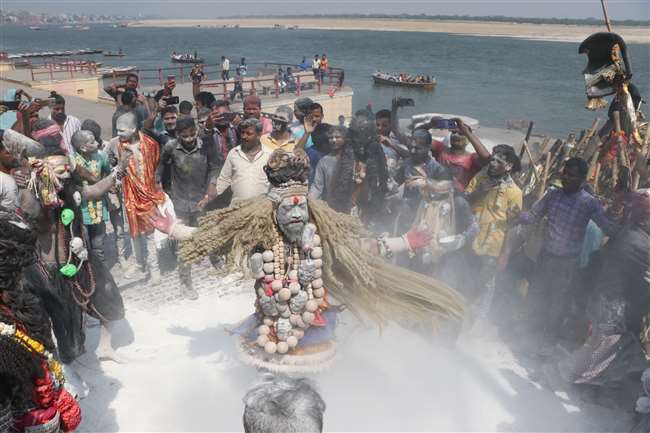 शोभायात्रा में भस्म और चंदे से रंगे भक्तों ने बाबा मशान नाथ का जयकारा लगाया। इस मौके पर बाबा भोलेनाथ के भक्तों ने भूत-प्रेत-पिशाच का स्वांग रचा। अघोरी बाबा बनकर यात्रा में करतब दिखाए। सभी लोग हर-हर महादेव के जयकारों के साथ चिता भस्म की होली खेलने गंगा तट पर पहुंचे।