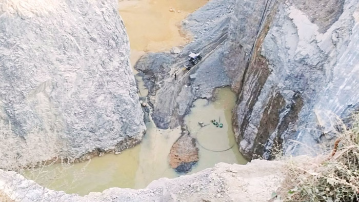 शनिवार की दोपहर बाद खदान में ड्रिलिंग के दौरान चट्टान गिरने से मजदूर मलबे में दब गए थे। इनकी संख्या 15 बताई जा रही है। हादसे के बाद पुलिस-प्रशासन की निगरानी में एनडीआरएफ-एसडीआरएफ की टीमें पिछले 48 घंटे से राहत कार्य में जुटी हुई हैं। सोमवार की सुबह पांच बजे तक चार शव मलबे से निकाले गए, जबकि शाम करीब आठ बजे दो शव और मिले।