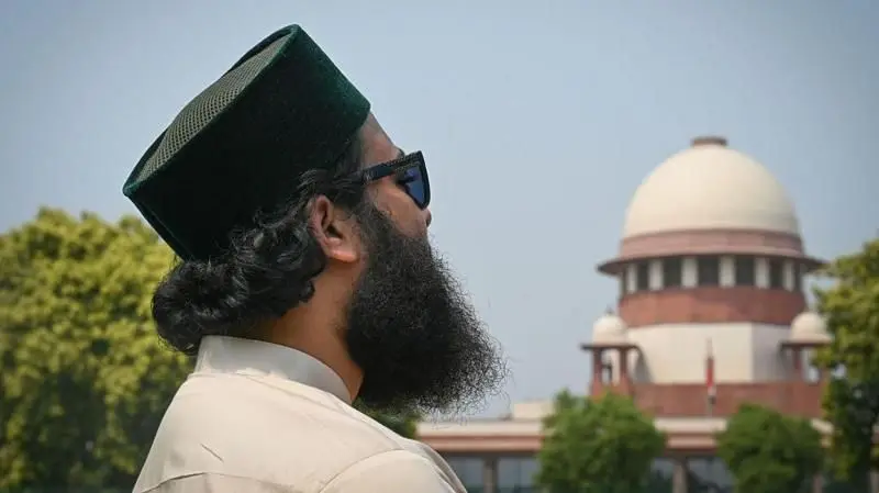 सुप्रीम कोर्ट के बाहर खड़ा एक मुसलमान व्यक्ति