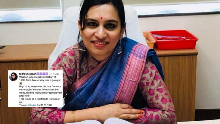 नई दिल्ली। मुंबई की महिला आईएएस अधिकारी निधि चौधरी द्वारा किए गए गांधी-विरोधी ट्वीट को लेकर विवाद पैदा हो गया है। अधिकारी ने पूरी दुनिया से महात्मा गांधी की प्रतिमाएं हटाने और भारतीय मुद्रा से उनकी तस्वीर हटाने की बात कही थी। उन्होंने राष्ट्रपिता के नाम वाली सड़कों और संस्थाओं का नाम बदलने की भी मांग की थी और गांधी की हत्या करने वाले नाथूराम गोडसे को धन्यवाद कहा था। निधि चौधरी ने अपने ट्वीट में लिखा था कि हम गांधी की 150वीं जयंती मना रहे हैं, इससे बढ़िया मौका क्या हो सकता है कि हम अपने नोटों से उनकी तस्वीर हटा दें। दुनिया भर से उनकी मूर्तियां हटा दें। निधि ने गोडसे को शुक्रिया अदा करते हुए लिखा, ‘थैंंक्यू गोडसे 30.1.48 के लिए। इस ट्वीट के लिए निधि चौधरी की खूब आलोचना हुई। इसके बाद उन्होंने अपना ट्वीट डिलीट कर दिया है।
