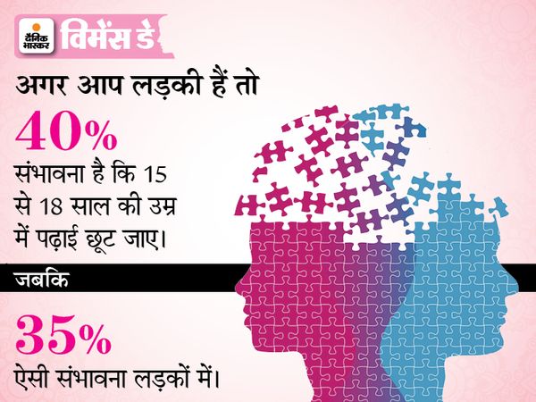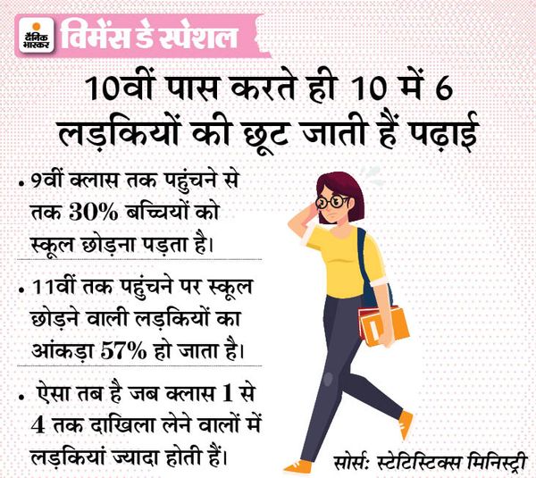 वहीं, केंद्रीय सांख्यिकी मंत्रालय का कहना है कि नौवीं क्लास में पहुंचने तक 30% लड़कियों को स्कूल छोड़ना पड़ता है। क्लास 11 आते-आते ड्रॉपआउट्स का यह आंकड़ा बढ़कर 57% हो जाता है।