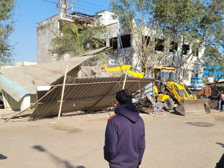 अवैध कमाई धूल में मिलाई:AB रोड पर ढाबा मिडलैंड और नावदा पंथ में होटल सुकून पर चला बुलडोजर, ग्राहकों को अवैध रूप से परोसते थे शराब