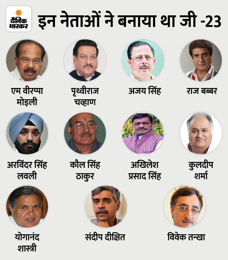 जी-23 से आठ कांग्रेसियों ने खुद को अलग कर लिया है, जबकि एक नेता जितिन प्रसाद ने UP विधानसभा चुनाव से पहले BJP का दामन थाम लिया था। असंतुष्ट खेमे में अब केवल 14 नेता ही बचे हैं। इनमें गुलाम नबी आजाद, भूपेंद्र सिंह हुड्डा और पृथ्वीराज चव्हाण पूर्व CM रह चुके हैं। इनके अलावा ज्यादातर नेताओं का राज्यसभा का कार्यकाल खत्म हो चुका है या खत्म होने वाला है।