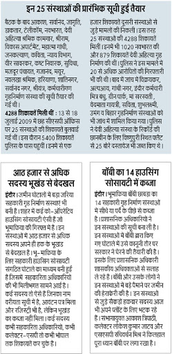 सूची बनाकर प्लॉट भी बांटे, कुछ को ही मिले : तत्कालीन संभागायुक्त प्रभात पाराशर ने गृहनिर्माण संस्थाओं की सूची बनाकर पीड़ित सदस्यों को प्लॉट दिलवाने शुरू किए। वरीयता सूची बनाकर प्लॉट देने की कवायद शुरू की। कुछ को प्लॉट मिले भी लेकिन ज्यादातर खाली हाथ रहे।