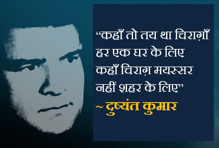 हिंदी में ग़ज़ल की शुरुआत करने वाले महान कवि और गजलकार दुष्यंत कुमार ने अपनी जिंदगी में हर मौके के अनुसार सैकड़ों, हजारों शेर और गजलों की रचना की है, और ग़ज़ल को ठेठ उर्दू से निकालकर हिंदी में लाए हैं। हिंदी में यानी जनता की आम भाषा में ग़ज़ल कहने का सबसे पहले श्रेय गजल सम्राट दुष्यंत कुमार को ही जाता है। उनके कुछ खास शेरों को मैं आप सबके साथ साझा कर रहा हूं, देखियेगा जरा ,,,,,,,