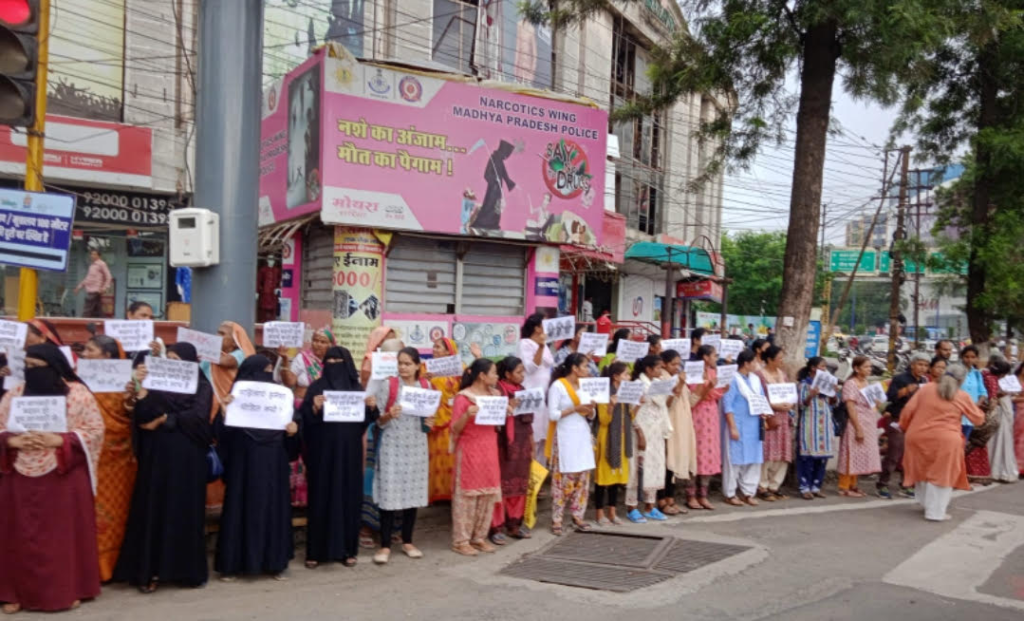 मणिपुर में दो बेटियों को नग्न घुमाने और उनके साथ बलात्कार करके सामूहिक बलात्कार करके मार डालने की घटना के खिलाफ इंदौर के जागरूक लोगों ने विरोध प्रदर्शन किया । महात्मा गांधी की प्रतिमा के सामने रीगल चौराहे पर 4:00 बजे शुरू हए विरोध प्रदर्शन ने धीरे-धीरे एक बड़ा रूप ले लिया।पहले लगभग 20 22 लोग इस प्रदर्शन में शामिल हुए फिर धीरे-धीरे 10-10 ,20-20 के जत्थों में महिलाएं, पुरुष, बुजुर्ग, बेटियां सब इसमें शामिल होते गए।