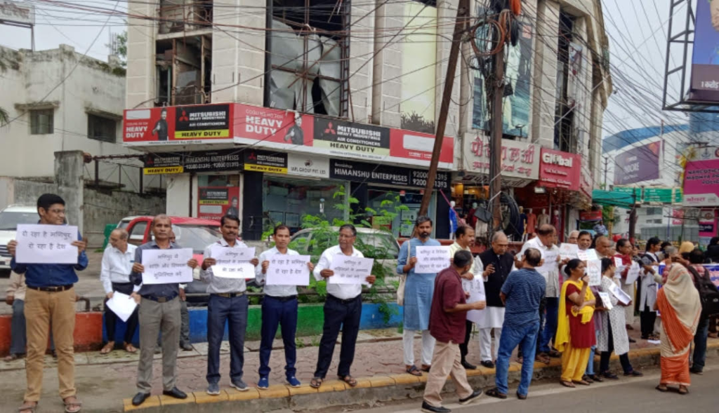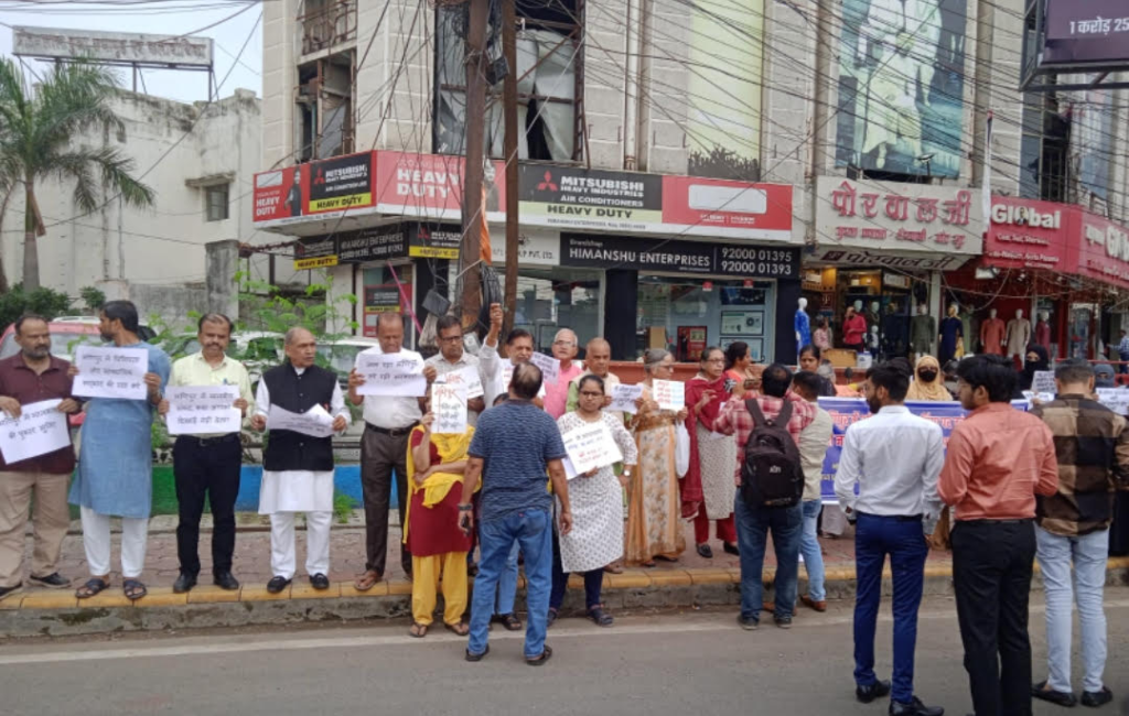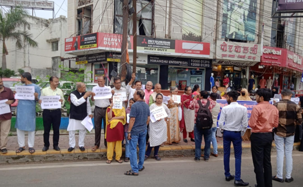 मणिपुर में हिंसा :संगठनों ने विरोध में इंदौर में बनाई मानव श्रंखला, रीगल तिराहे पर किया प्रदर्शन