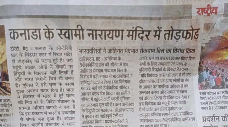 री दुनिया में…., जी हां पूरी दुनिया में मंदिरों पर हमलों की घटनाएं बढ़ी हैं हैं…!