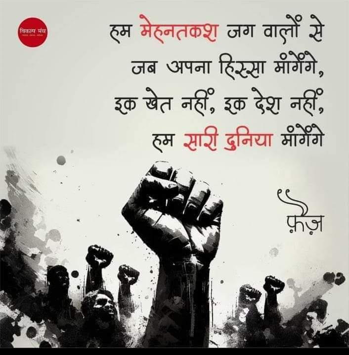 इस दुनिया को मजदूरों, किसानों और तमाम मेहनतकशों ने सजाया संवारा है। आज दुनिया भर के मजदूरों का अंतर्राष्ट्रीय पर्व यानी मजदूर दिवस है। दुनिया भर के मेहनतकशों को मई दिवस की क्रांतिकारी बधाईयां और मुबारकबाद।इस दिवस पर फैज अहमद फैज के अंतर्राष्ट्रीय तराने और मेहनतकशों के गीत की कुछ पंक्तियां याद आ रही हैं, देखिये आप भी,,,,,,