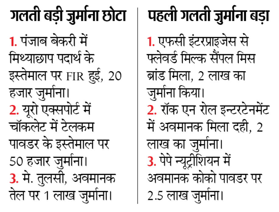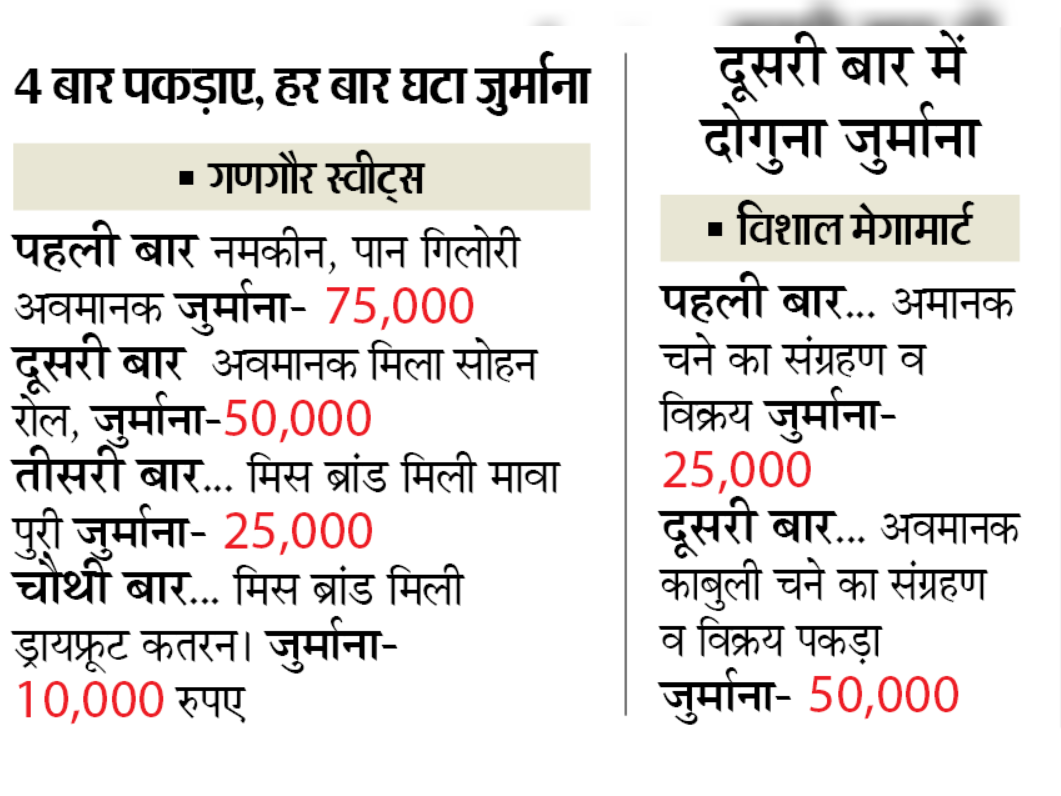 वाडीलाल आइस्क्रीम और पेपे न्यूट्रीशियन पर पहली बार में ढाई-ढाई लाख का जुर्माना लगा, गणगौर स्वीट्स पर पहली बार में 75 हजार तो चौथी बार में 10 हजार का ही जुर्माना?