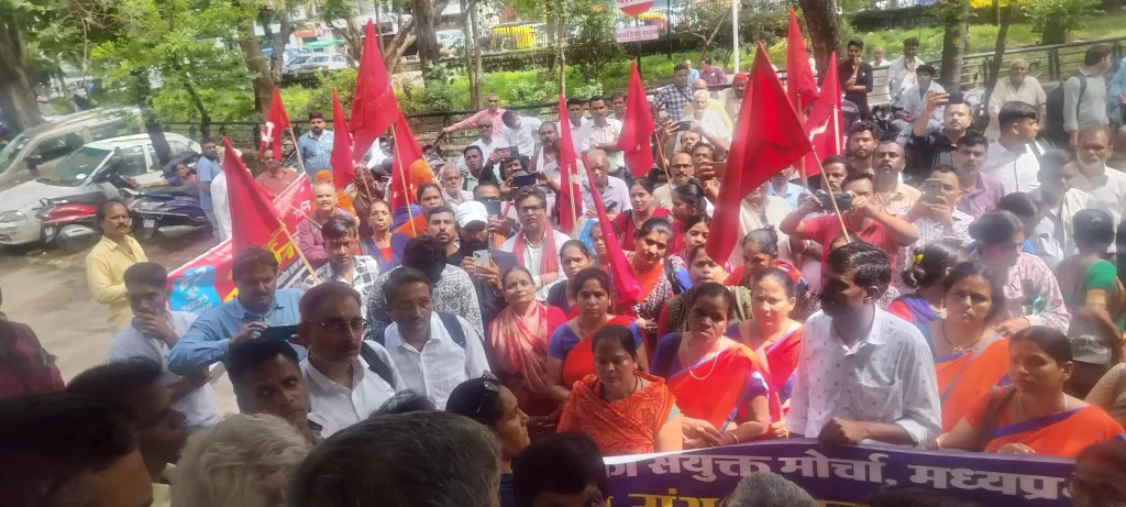 संयुक्त मोर्चा के नेताओं ने कहा कि प्रदेश की सरकार कितनी श्रमिक विरोधी है, यह हाल में न्यूनतम वेतन पुनरीक्षण की प्रक्रिया व परिणाम में उजागर हुआ है। श्रमिकों के वैधानिक अधिकार पर कुठाराघात करते हुए सरकार ने न्यूनतम वेतन अधिनियम के तहत पांच वर्ष में न्यूनतम वेतन पुनरीक्षण के बजाय लगभग 10 वर्ष में 1 अप्रैल 2024 से पुनरीक्षण कर तथा नवंबर 2019 से मार्च 2024 तक की मासिक वृद्धि की राशि को मजदूरों के जेब से निकाल मालिकों की तिजोरी में डाल दिया। हद तो यह है कि प्रदेश के लाखों श्रमिकों को वैधानिक रूप से 1 अप्रैल 2024 से बड़ी दरें तथा एरियर्स देय हैं लेकिन प्रदेश के लाखों श्रमिक आज भी इन पुनरीक्षित दरों के एरियर्स तक से वंचित है। जिनमें दसियों हजार तो म प्र शासन व उसके अधीन कार्यरत बिजली कंपनियों के कार्यालयों में संविदा, आऊटसोर्स और ठेके आदि पर कार्यरत कर्मी है।