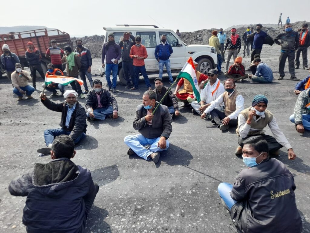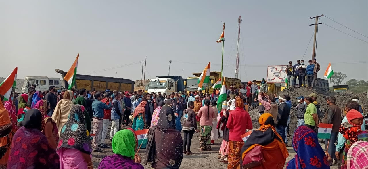 *भूविस्थापितों ने खदान में घुसकर फहराया तिरंगा, आज फिर तीन घंटे खदान बंद