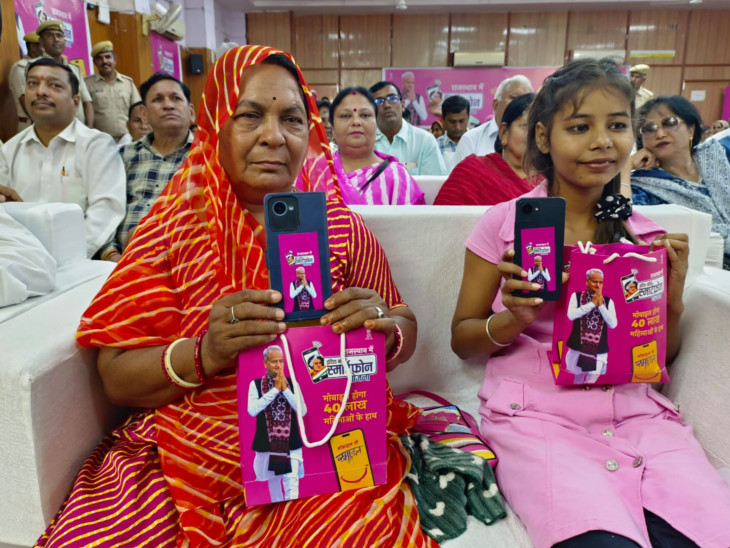 जोधपुर में डीआरडीए हॉल से मौजूद लाभार्थियों ने वर्चुअली सीएम से बात की। इस दौरान उन्हें स्मार्टफोन भी दिए गए।