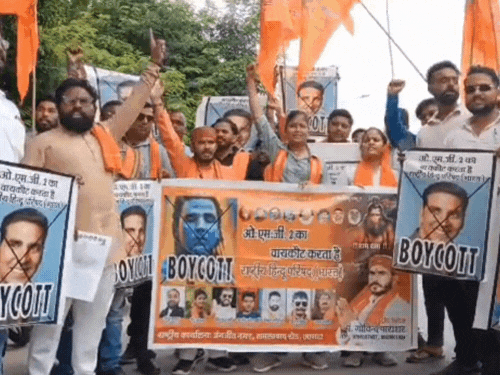 अक्षय कुमार स्टारर फिल्म ओह माय गॉड 2 आज रिलीज हो रही है। इसके विरोध में राष्ट्रीय हिंदू परिषद भारत नाम की संस्था ने आगरा में प्रदर्शन किया। संगठन के पदाधिकारियों ने ऐलान किया है कि जो भी व्यक्ति अक्षय कुमार के मुंह पर थप्पड़ मारेगा या उनके चेहरे पर थूकेगा, उसे 10 लाख रुपए का इनाम दिया जाएगा। फिल्म जिस सिनेमाघर में रिलीज होगी, उसमें आग लगाने से भी पीछे नहीं हटेंगे।