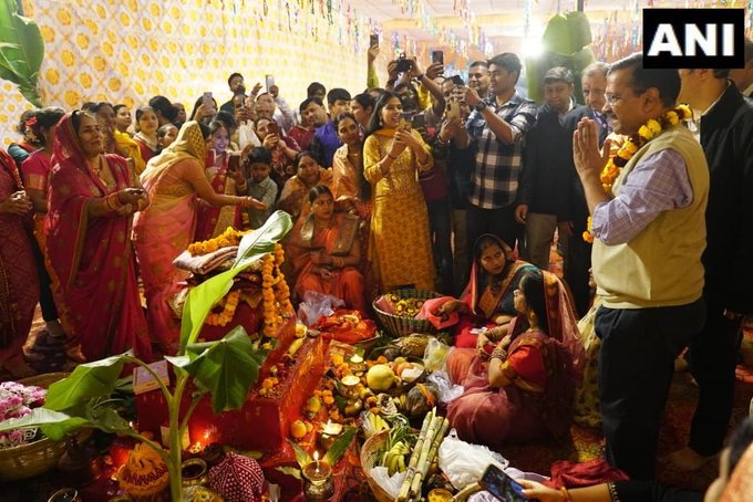 दिल्ली के मुख्यमंत्री अरविंद केजरीवाल राष्ट्रीय राजधानी के लक्ष्मीबाई नगर, पूर्वी किदवई नगर और कालीबाड़ी इलाकों में छठ घाटों पर पहुंचे।