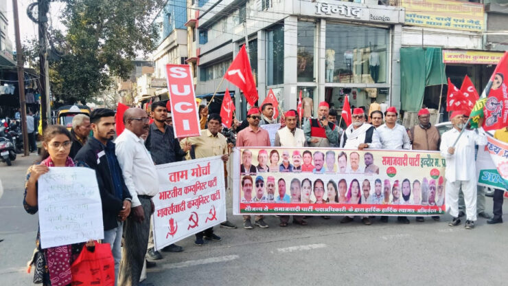 इंदौर। गत दिवस भागीरथपुरा में दूषित पेयजल प्रदाय से डेढ़ सौ से ज्यादा लोगों की पीड़ित होने और आठ लोगों की मौत के लिए नगर निगम को जिम्मेदार ठहराते हुए वामपंथी समाजवादी दलों ने आज मालवा मिल पर मानव श्रृंखला बनाई तथा प्रदर्शन किया। मार्क्सवादी कम्युनिस्ट पार्टी, भारतीय कम्युनिस्ट पार्टी ,समाजवादी पार्टी, एस यू सी आई, इंटक, एटक, सीटू, एसएमएस, सहित विभिन्न राजनीतिक सामाजिक संगठनों के सैकड़ो कार्यकर्ताओं ने प्रदर्शन में हिस्सेदारी की। मानव श्रृंखला और प्रदर्शन का नेतृत्वसर्व श्री श्याम सुंदर यादव, रामबाबू अग्रवाल, रामस्वरूप मंत्री, सी एल सर्रावत, प्रमोद नामदेव, रुद्रपाल यादव, अरुण चौहान, राजेन्द्र यादव आदि ने किया।