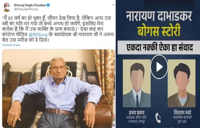 तो आरएसएस से जुड़े लोगों की कुर्बानियों की तमाम कहानियों की तरह ये कहानी भी फ़र्ज़ साबित हुई। जी हाँ, आपने अब तक आरएसएस से जुड़े नारायण राव दाभाडकर के त्याग की कहानी सोशल मीडिया पर सुन ही ली होगी। न जाने कितने लोगों ने नागपुर निवासी 85 वर्षीय दाभाडकर की उस कहानी को सुनकर श्रद्धा व्यक्त की जिसमें कहा गया था कि बुज़ुर्ग ने किसी और के लिए अस्पताल में अपना बेड त्याग दिया और तीन दिन बाद उनकी मौत हो गयी।