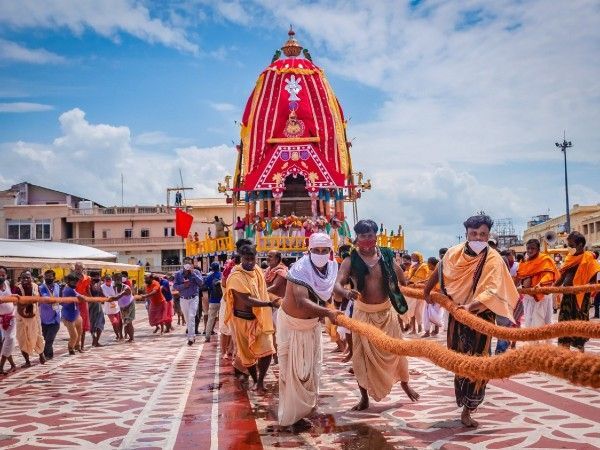 जय जगन्नाथ और हरि बोल के जयघोष, झांझ-मंजीरे, तुरही और शंखनाद के बीच सबसे पहले शाम 4 बजकर आठ मिनट पर भगवान बलभद्र का तालध्वज रथ आगे बढ़ा। इसके बाद देवी सुभद्रा का दर्पदलन रथ और अंत में भगवान जगन्नाथ का नंदीघोष रथ आगे बढ़ा। तीन रथों को अलग-अलग रंग के लकड़ी के बने घोड़ों से सजाया गया। जहां भक्तगणों ने रथ खींचा तो पुजारियों ने रथों पर सवार देवताओं स्वागत किया।