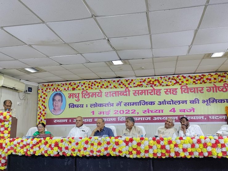 मधु लिमये जन्म शताब्दी समारोह कार्यक्रम 1 मई 22 को पटना के ए.एन सिन्हा इंस्टिट्यूट में पूर्व सांसद राजनीति प्रसाद द्वारा आयोजित किया गया। कार्यक्रम को मधु लिमये जन्म शताब्दी समारोह समिति के राष्ट्रीय अध्यक्ष प्रो. राजकुमार जैन, समाजवादी समागम के राष्ट्रीय महामंत्री अरुण श्रीवास्तव, बिहार सरकार के पूर्व मंत्री रामचंद्र पूर्वे, पूर्व मंत्री श्याम रजक, ए एन सिन्हा इंस्टीट्यूट के पूर्व निदेशक डी एन दिवाकर, उच्च न्यायालय पटना की एड. सुश्री वीणा जायसवाल, बिहार के प्रसिद्ध न्यूरो सर्जन डॉ गोपाल प्रसाद सिन्हा,पटना के उच्च न्यायालय के एडवोकेट एसोसिएशन के अध्यक्ष, वरिष्ठ अधिवक्ता योगेंद्र चंद्र वर्मा एवं छात्र संघर्ष वाहिनी की कंचन बाला आदि ने संबोधित किया। मंच का संचालन सामाजिक कार्यकर्ता मदन जी द्वारा किया गया।