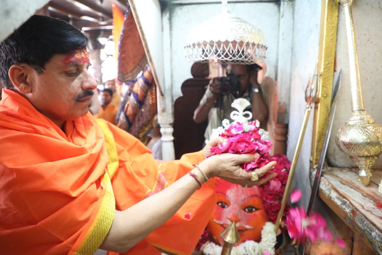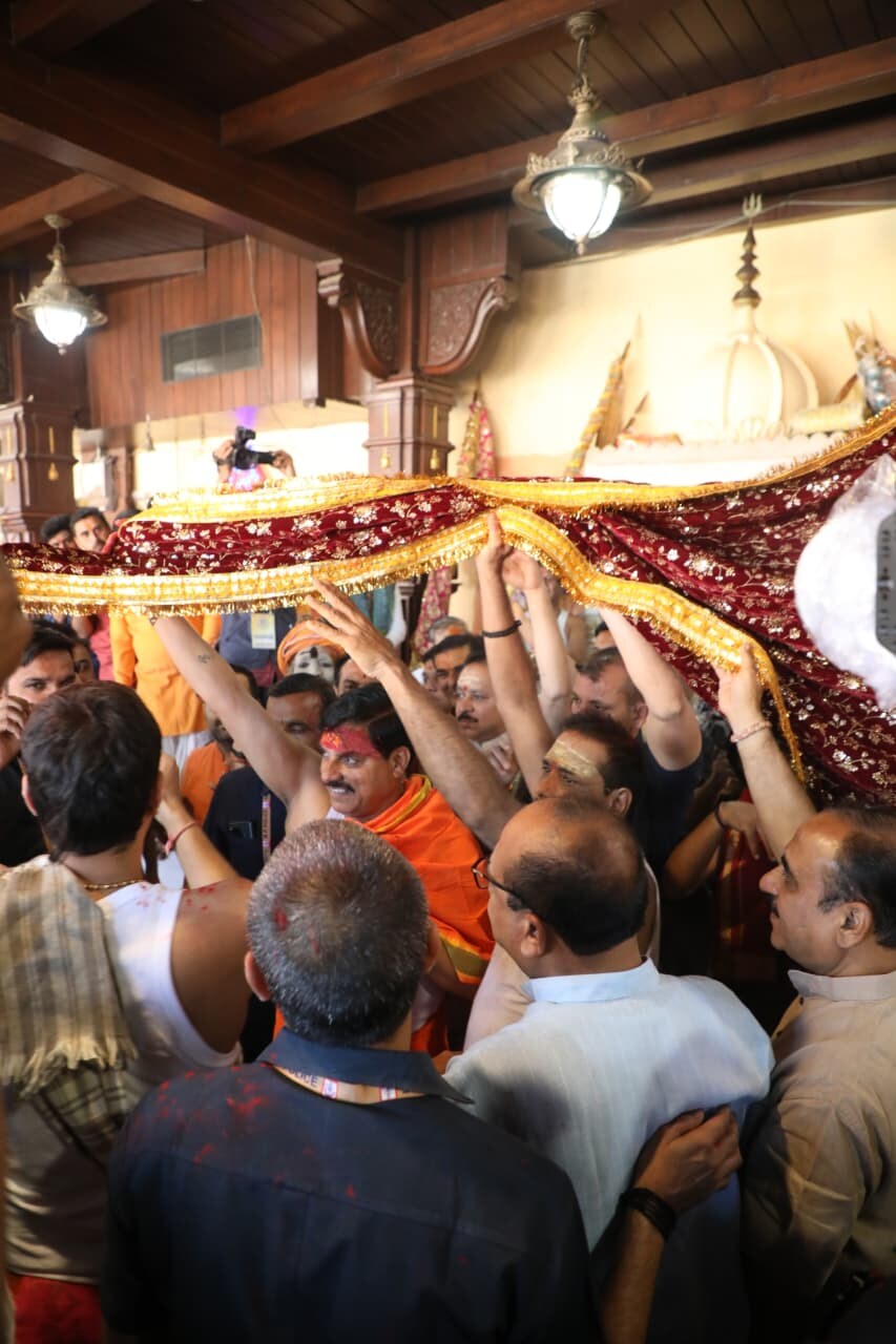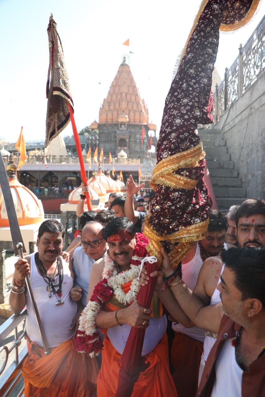 महाकाल मंदिर में CM मोहन यादव ने परंपरागत गैर और ध्वजा का पूजन
