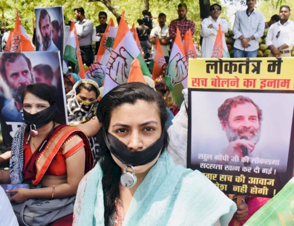 , राहुल गांधी की संसद सदस्यता रद्द करने से कांग्रेस कार्यकर्ता बेहद नाराज हैं। मध्य प्रदेश के अलग-अलग हिस्सों में कांग्रेस कार्यकर्ता कल से ही विरोध प्रदर्शन कर रहे हैं। इसी क्रम में शनिवार को कांग्रेस कार्यकर्ताओं ने मुंह पर काली पट्टी बांधकर और उसके ऊपर ताला लगाकर प्रदर्शन किया। कांग्रेस कमेटी की प्रवक्ता दीप्ति सिंह ने कहा कि भारतीय जनता पार्टी की तानाशाह सरकार विपक्ष पर ताला लगाकर रखना चाहती है।