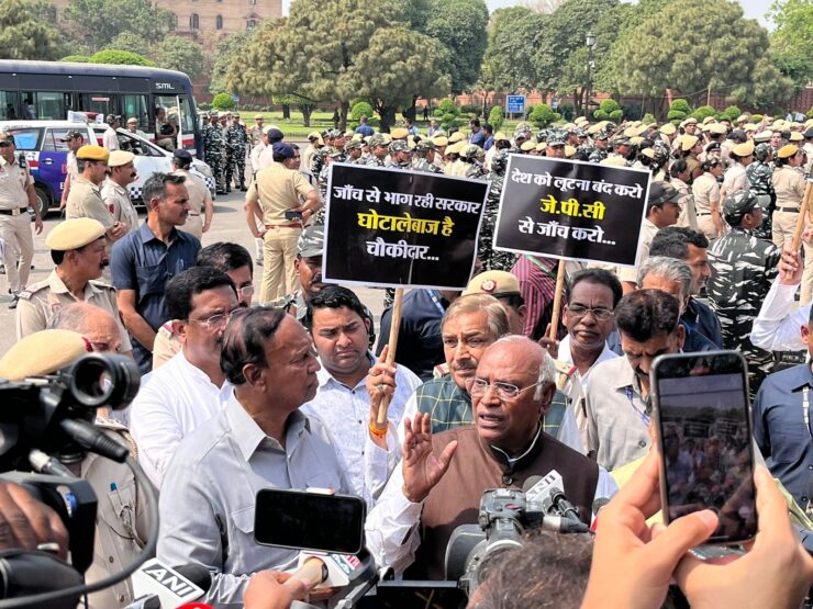 खड़गे ने मीडिया से कहा- 200 सांसदों रोकने के लिए सरकार ने 2 हजार पुलिस लगा दी।