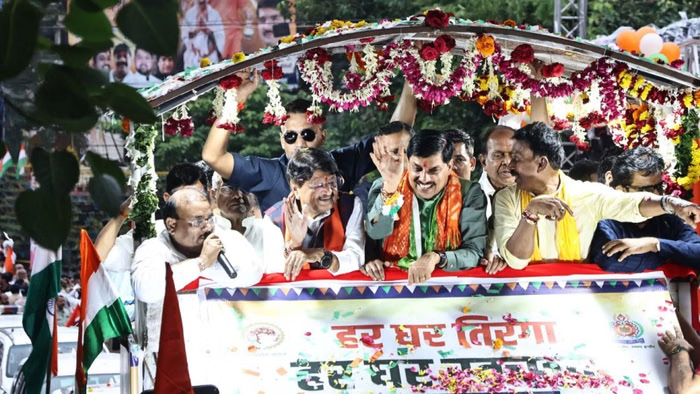 मुख्यमंत्री मोहन यादव ने इंदौर को हर क्षेत्र में नंबर वन बनाने की बात कही। मुख्यमंत्री ने कहा कि अब इंदौर उद्योग, पर्यावरण और जल संरक्षण जैसे तमाम क्षेत्रों में नंबर वन बनेगा। उन्होंने कहा कि दुश्मन ने अब हरकत की तो बिछड़ा पंजाब भी भारत में मिला लेंगे। कार्यक्रम में लाखों लोग शामिल हुए। सभी ने इंदौर को हर क्षेत्र में नंबर वन बनाने का संकल्प लिया। 100 से अधिक मंचों पर मुख्यमंत्री का स्वागत किया गया। मुख्यमंत्री मोहन यादव ने कहा कि कांग्रेस के नेता चीन और पाकिस्तान को खुश करने में लगे हैं। आज देश दुनियाभर में अपनी ताकत दिखा रहा है और दुश्मनों को मुंह तोड़ जवाब दे रहा है। ऐसे में भी कांग्रेस विरोधी ताकतों को खुश करने में लगी है। मुख्यमंत्री ने कहा कि कांग्रेस के द्वारा की गई गलतियों को आज भी देश भुगत रहा है। कांग्रेस ने नदियों के लिए जो संधियां की उन्हें आज भी हम झेल रहे हैं। इससे दुश्मन देशों को फायदा हो रहा है। यात्रा में तिरंगे से सजे विशेष रथ पर मुख्यमंत्री डॉ. मोहन यादव सवार हुए। उन्होंने पूरे यात्रा मार्ग में नागरिकों का अभिवादन किया। जगह-जगह नागरिकों ने मुख्यमंत्री का उत्साह और उमंग से भव्य स्वागत किया।