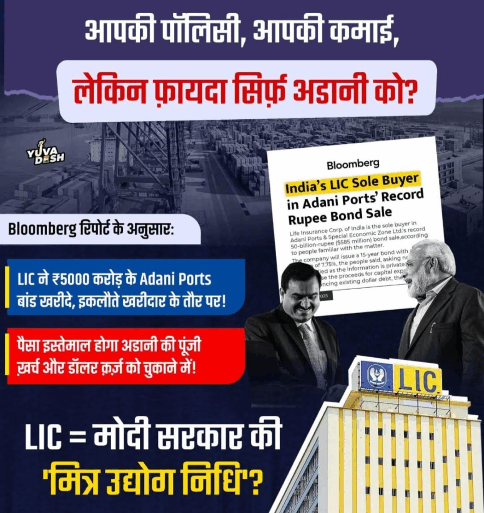 यह बात सब लोग जानते है कि मोदी सरकार बड़े कॉर्पोरेट घरानों का पक्ष लेती है। यह भी सबको मालूम है कि अडानी समूह इस आकर्षक अंदरूनी मंडली का हिस्सा है। इसकी पुष्टि वाशिंगटन पोस्ट के हालिया खुलासे से होती है कि केंद्रीय वित्त मंत्रालय ने भारत की एक प्रमुख जीवन बीमा कंपनी, भारतीय जीवन बीमा निगम (एलआईसी) द्वारा अडानी समूह को बेलआउट देने की व्यवस्था की थी।