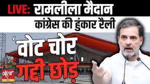कांग्रेस पार्टी ने आज दिल्ली के ऐतिहासिक रामलीला मैदान में ‘वोट चोर, गद्दी छोड़’ नारे के साथ विशाल महारैली का आयोजन किया। यह रैली चुनावी प्रक्रिया में कथित धांधली, मतदाता सूचियों के विशेष गहन पुनरीक्षण (SIR) और ‘वोट चोरी’ के आरोपों के खिलाफ पार्टी के अभियान को तेज करने के लिए आयोजित की गई। रैली में सरकार और निर्वाचन आयोग पर मिलीभगत के गंभीर आरोप लगाए गए।