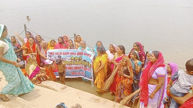 नर्मदा संरक्षण समिति की सैकड़ों महिलाओं ने विवेकानंद घाट से बांद्राभान तक की सफाई