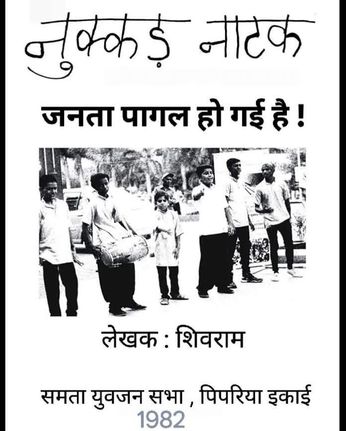 1981 – 82 में समता युवजन सभा की पिपरिया यूनिट के युवा साथियों ने ‘ जनता पागल हो गई ‘ नुक्कड़ नाटक का पिपरिया जैसे कस्बे में जब प्रदर्शन किया तो यह नागरिकों के लिए एक कौतूहल था । क्योंकि इसके पहले किसी व्यक्ति का नुक्कड़ नाटक शैली से कोई परिचय नहीं था । इसके साथ ही गड्डा नाटक का प्रदर्शन भी किया था । जब नाटक होता था तो मदारी के खेल जैसा मज़मा जुट जाता था । नुक्कड़ नाटक खुले सार्वजनिक स्थानों पर आयोजित किए जाने वाले नाटक होते हैं, जो अक्सर किसी सामाजिक मुद्दे पर जागरूकता फैलाने या सामाजिक परिवर्तन लाने के लिए किए जाते हैं. इनमें कलाकार बिना किसी मंच के सीधे दर्शकों के बीच प्रदर्शन करते हैं और दर्शकों से सीधे संवाद करते हैं. ये भारत में सामाजिक और राजनीतिक प्रतिरोध के एक प्रमुख साधन के रूप में विकसित हुए हैं. नुक्कड़ नाटकों का मुख्य उद्देश्य सामाजिक सरोकार के मुद्दों जैसे भ्रष्टाचार, महंगाई, बेरोजगारी और स्वास्थ्य के बारे में जागरूकता फैलाना होता है. उल्लेखनीय है कि पिपरिया के युवा साथियों को नुक्कड़ नाटक का प्रशिक्षण जाने माने रंगकर्मी Shamsul Islam और नीलिमा शर्मा ने किशोर भारती में आयोजित एक प्रशिक्षण शिविर में दिया था । इस दौरान तीन नाटक तैयार किए गए थे जिनका जगह जगह प्रदर्शन किए गए ।