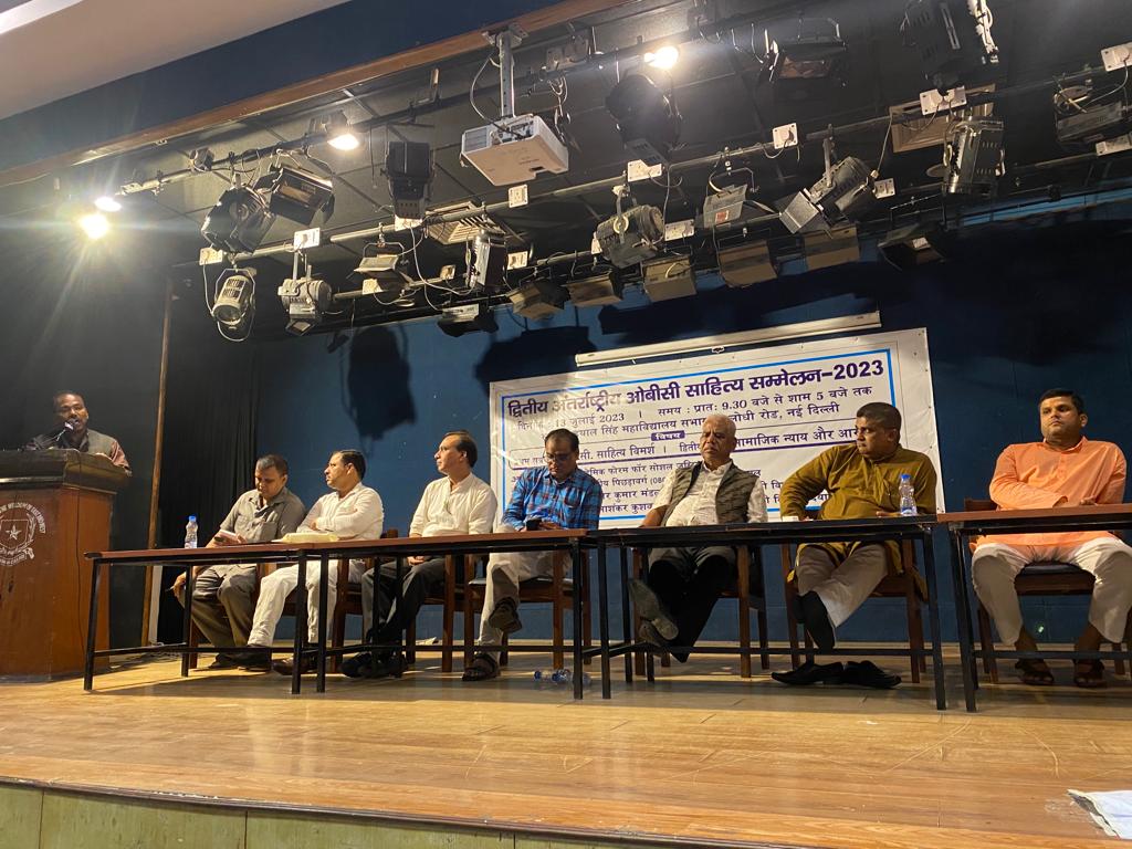 गत 13 जुलाई, 2023 को दूसरे अंतर्राष्ट्रीय ओबीसी साहित्य सम्मेलन का आयोजन दिल्ली विश्वविद्यालय के दयाल सिंह कॉलेज, नई दिल्ली के सभागार में किया गया। इस सम्मेलन में भारत के अलावा नेपाल और मारीशस के प्रतिनिधियों ने भाग लिया। इस मौके पर अंतर्राष्ट्रीय पिछड़ा वर्ग अनुसंधान केंद्र, जनकपुर (नेपाल) के अध्यक्ष वीर बहादुर महतो ने अपने संबोधन में जहां एक ओर नेपाल में ओबीसी समुदाय की गतिविधियों का ब्यौरा दिया ताे दूसरी ओर ओबीसी साहित्य के विस्तार की आवश्यकता पर जोर दिया। इसके पहले उद्घाटन सत्र, जिसका विषय ‘ओबीसी साहित्य विमर्श’ था, को ऑनलाइन संबोधित करते हुए प्रसिद्ध भाषाविद् प्रो. राजेंद्र प्रसाद सिंह ने कहा कि ओबीसी छायावादी शब्द नहीं है। यह एक संवैधानिक शब्द है और इसमें जातियों को शामिल करने की प्रक्रिया अवैज्ञानिक नहीं थी।