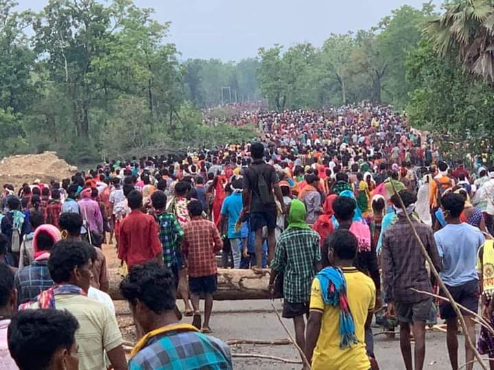 आदिवासियों ने इस कैंप के खिलाफ 12 मई से आंदोलन शुरू किया। सत्ता के इशारे पर सी.आर.पी.एफ के जवानों ने 17 मई को निहत्थे आदिवासियों पर गोलियों की बौछार की जिसमें 3 आदिवासी शहीद हो गए व अनेको घायल हुए। एक गर्भवती महिला भगदड़ में शहीद हुई। इस घटना के विरोध में पिछले 28 दिन से 40 हजार के आस-पास आदिवासी उस जगह पर धरना दिए हुए थे। इन 28 दिनों में लगातार बारिश भी आती रही।