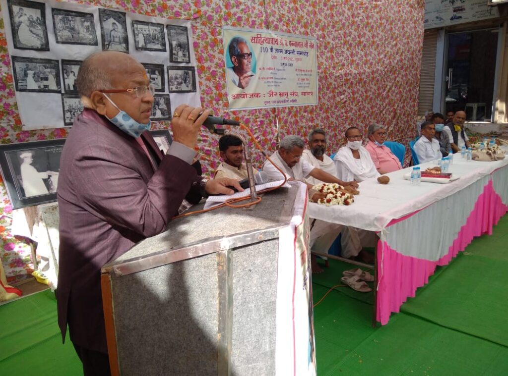 सागर । डॉ पंडित पन्नालाल जैन साहित्याचार्य ने अनेकों विद्वान तैया किये और आप विश्रु आचार्य श्री विद्यासागर जी मुनिमहाराज के गुरु थे। साहित्याचार्यजी ने आचार्यश्री सहित अनेकों मुनिराजों को पढ़ाया है। मढ़िया जी जबलपुर में महिनों प्रवास कर मुनिराज और आर्यिका माताजी, ब्रह्मचारी भैया दीदी जी पढ़ करते थे। ये उद्गार 5 मार्च को सागर के कटरा नमक मंडी स्थित कीर्ति स्तंभ के समक्ष डॉ पंडित पन्नालाल जैन साहित्याचार्य की 110 वीं जन्म जयंती के उपलक्ष्य में आयोजित कार्यक्रम में प्रमुख वक्ताओं ने अपने उदगार में व्यक्त किये। इस जन्म जयंती के अवसर पर शहर के गणमान्य नागरिकों ने पंडित जी की प्रतिमा पर माल्र्यापण कर श्रृद्धासुमन अर्पित किए।
