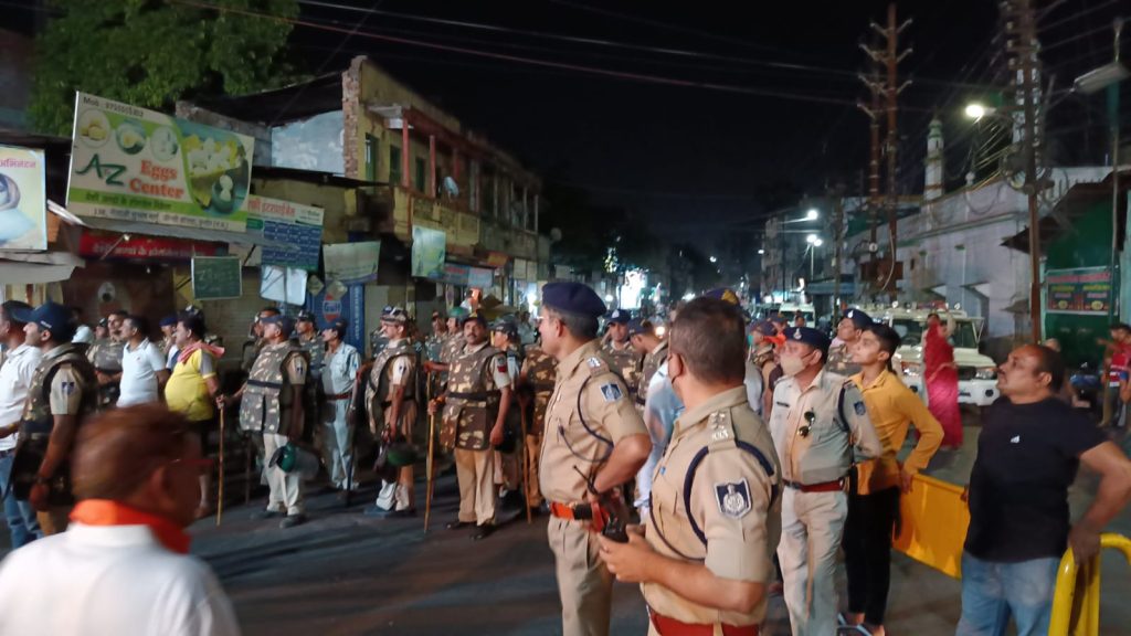 शोभा यात्रा के दौरान भारी पुलिस मौजूद।