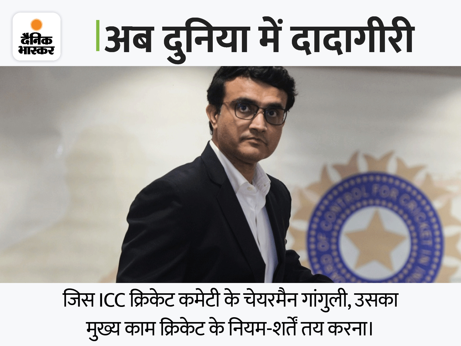 BCCI अध्यक्ष सौरव गांगुली को अब वर्ल्ड क्रिकेट में बड़ी जिम्मेदारी सौंपी गई है। सौरव को ICC मेंस क्रिकेट कमेटी का अध्यक्ष बनाया गया है। इस पद को पिछले 9 साल से अनिल कुंबले संभाल रहे थे। ICC क्रिकेट कमेटी का मुख्य काम क्रिकेट के नियम और शर्तों को तय करना है। अनिल कुंबले को 2012 में वेस्टइंडीज के क्लाइव लॉयड की जगह ICC क्रिकेट कमेटी का चेयरमैन बनाया गया था। 2016 में कुंबले को दोबारा चेयरमैन चुना गया।